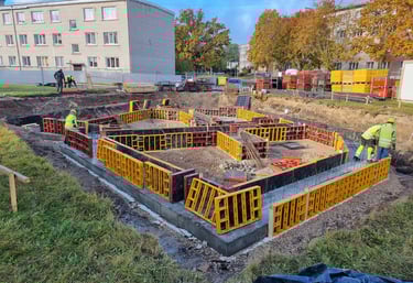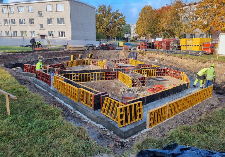 Mēs veicam betonēšanu, dzelzsbetona konstrukciju montāžu un projektu vadību.